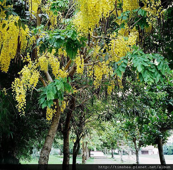 如果要說花朵如細雨紛飛的美感,日本精神的櫻花雨無疑是我心目中的第一名。除此之外,阿勃勒成串的造型,有如風鈴;如果不是因為她輕,我甚至更想用結實纍纍的葡萄來形容她。微風吹過時有如黃金雨,空氣中彷彿可以聽見鈴聲,那是讓人難忘的回憶。