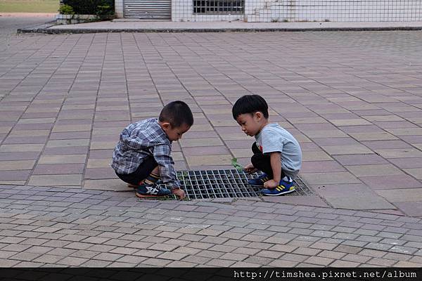 但是在學校奔跑的侑侑好快樂!爺爺教他踢球,很快進入狀況;對於其他社團活動或下課的學生亦充滿好奇。這完全不是現在心力交瘁的我們,假日足不出戶,只能把他們幾個兄弟關在家裡玩玩具可比。以前在昊昊身上看見那種新奇的表情,也出現在侑侑臉上了。